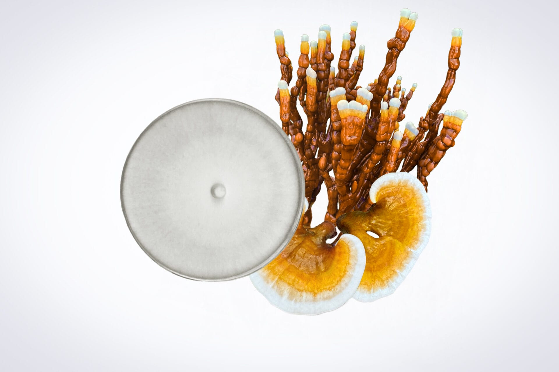 – Fully colonized Live mycelium of your choice on a 90mm Malt Yeast Peptone Agar petri dish.